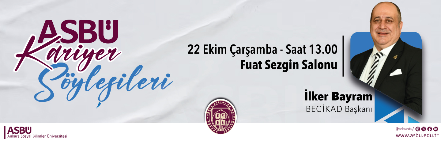 Duyurular 16 Ekim ASBÜ Kariyer Söyleşileri 05 Mayıs Kariyer ve Yetkinlik Buluşmaları-2 Başlıyor 28 Ocak Milli Yetkinlik Hamlesi Kampı Etkinlikler Tümü Nis 22 Kariyer Söyleşileri Mar 10 Japon Menşeli Şirketlerde Tercümanlık Üzerine Kariyer Söyleşisi Oca 30 Mezun Bilgi Sistemi